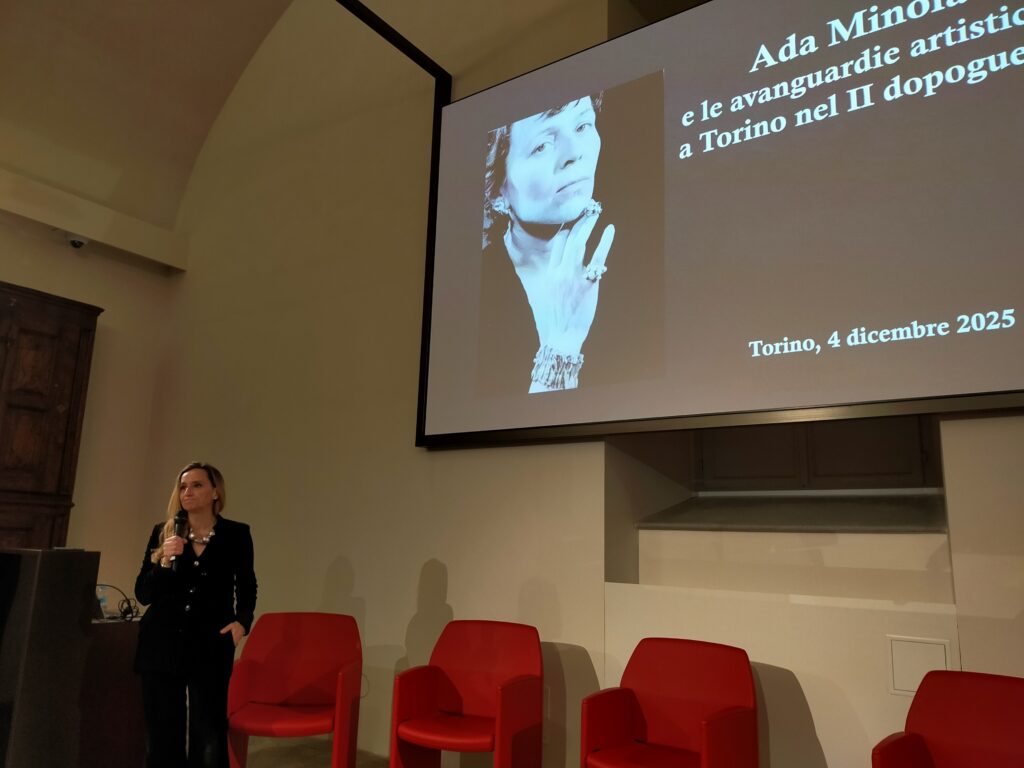 La conferenza vuole porre l’attenzione sulla figura di Ada Minola; proprio su Ada, nel 2016, la relatrice ha curato una mostra personale nella sala Atelier del Museo Civico d’Arte Antica di Palazzo Madama. Ada Minola è stata pittrice, orafa, gallerista, musa di grandi artisti. Nel 1960 il critico francese Miche Tapié si trasferì da Parigi a Torino fondando l’ICAR, International Center of Aesthetic Research, affidandone proprio alla Minola la direzione; quest’ultima diresse il centro fino alla sua chiusura, nel 1977.